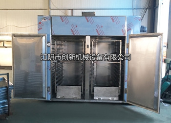 To minimize the temperature difference inside the points, in addition to the cycle of relying on forced air convection oven is still outside of the right and left with a sub-style device can be adjusted to regulate the sub-blade angle to the wind before and after the point of the upper and lower box temperature line. Temperature inside the temperature control device can set a constant value in the event of overrun, it will automatically light alarm. Hot air circle oven is intermittent drying rack, large drying equipment versatility, suitable for pharmaceutical, chemical, food, light industry, electronics industry, materials, finished products than temperature, curing, and even bacteria unit operation. Such as: raw material medicine, Chinese herbs, Chinese Herbal Medicine, powder, granule, powder, pill, pigments, dyes, spices, bottles, dehydrated vegetables, food, plastic resin, electric elements, baking and so on. Technical parameters: